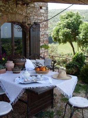 L'edificio in pietra locale, restituito dal restauro alle sue originali caratteristiche, oltre ad un ampio salone e grande ed attrezzata cucina, adatti a banchetti, ospita al suo interno sei appartamenti dotati ognuno degli stessi confort, ma diversi l'uno dall'altra, nei quali il gusto e la fantasia della proprietaria si sono felicemente coniugati con la tradizione attraverso l'impiego di materiali quali il cotto antico e il legno.