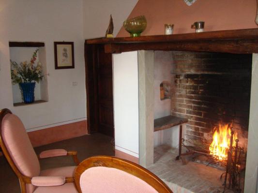Il primo piano del complesso principale offre una stanza comune dove spicca un grande focolare, originario della struttura antica, e da cui si accede ad una terrazza anche questa comune ai 3 appartamenti suddetti.